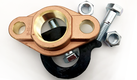 Larger water meters require mating flanges. These flanges are two-bolt and compress a rubber gasket to make a drip-tight seal. Each flange comes with a 1/8” full-face, drop-in rubber gasket, and can be packaged and supplied in box quantities, single kits (K1) or double kits (K2). These flanges are certified “Lead-Free” and made to fit any 1-1/2" or 2" water meter, regardless of the manufacturer.